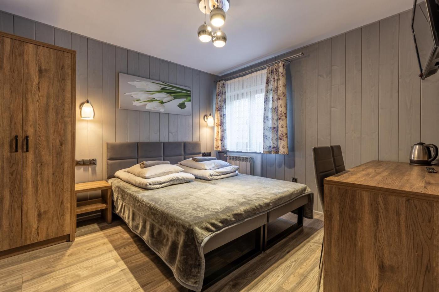 Pokój trzyosobowy z widokiem na góry. Ten pokój trzyosobowy oferuje zestaw do parzenia kawy i herbaty, jadalnię oraz łazienkę z kabiną prysznicową. Udogodnienia obejmują szafę, telewizor z płaskim ekranem oraz sprzęt do grillowania. Podłoga została wyłożona parkietem. Z okien roztacza się widok na góry. Pokój Trzyosobowy - 4 osobowy. Powierzchnia pokoju ok.: 18 mkw. ;
