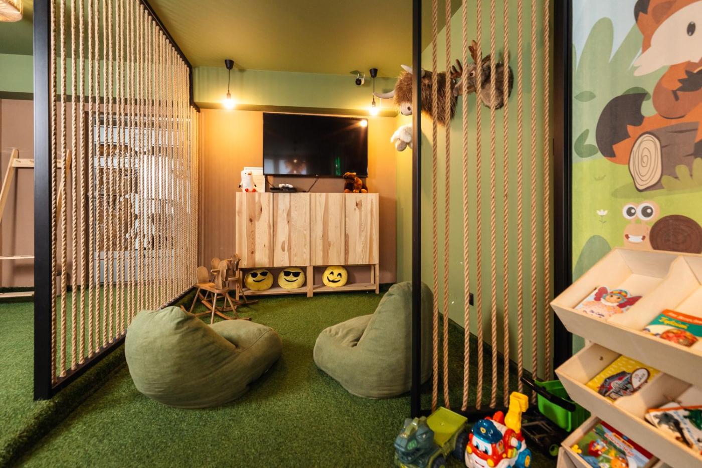 Obiekt zapewnia również liczne udogodnienia rekreacyjne, takie jak wynajem rowerów, jazda na rowerze, a także piesze wycieczki 🚶. Dla rodzin z dziećmi przygotowano klub dla dzieci oraz salę zabaw, co sprawia, że pobyt w hotelu będzie atrakcyjny zarówno dla dorosłych, jak i najmłodszych. Na terenie obiektu znajduje się ogród z meblami ogrodowymi oraz miejscem na piknik, idealnym na relaks w otoczeniu natury.