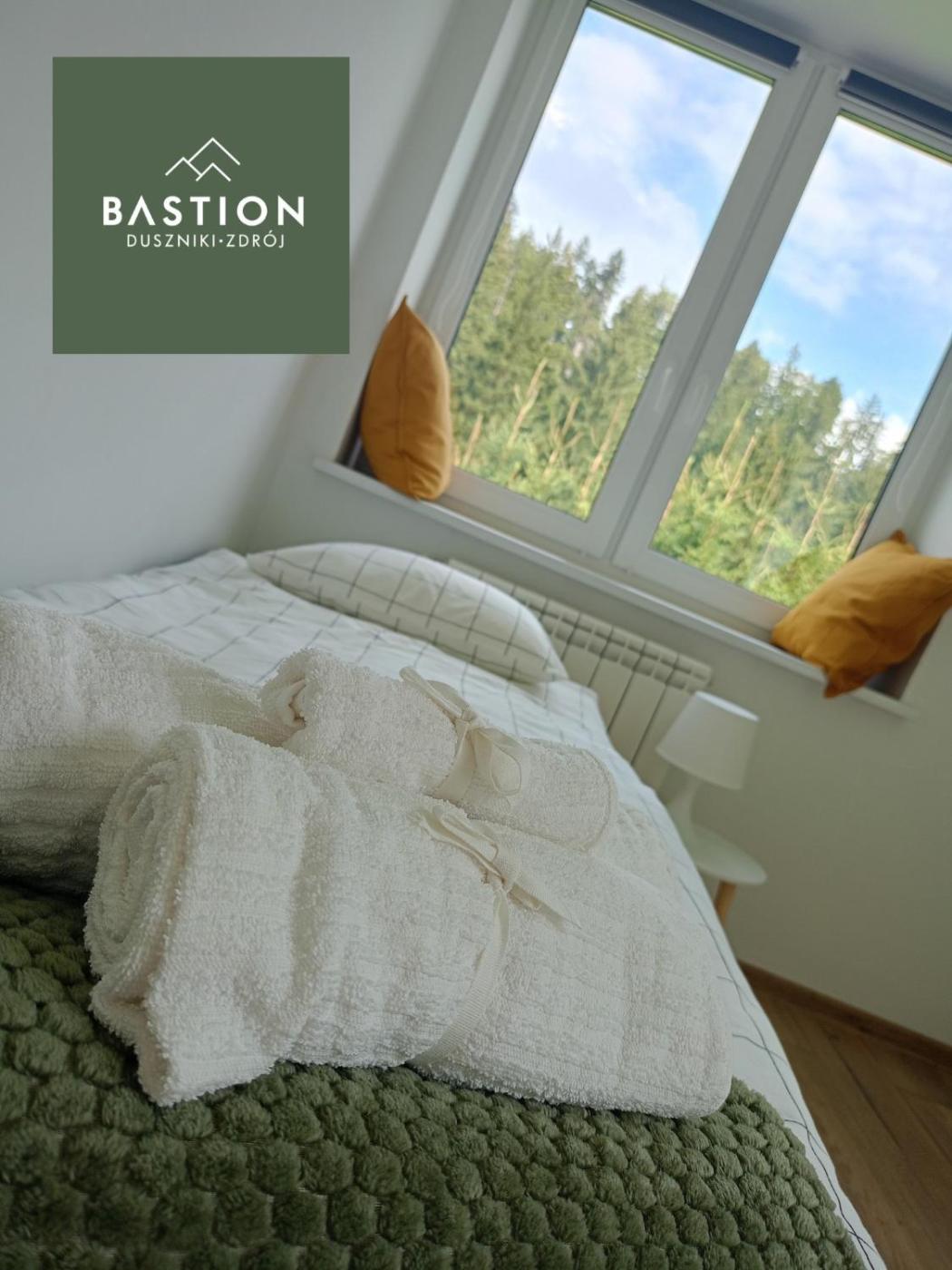 Obiekt Bastion Duszniki-Zdrój znajduje się w miejscowości Duszniki-Zdrój. Odległość ważnych miejsc od obiektu: Stacja kolejowa Kudowa Zdrój – 11 km, Dworzec kolejowy w Polanicy-Zdroju – 14 km, Błędne Skały – 17 km. Goście mogą korzystać z bezpłatnego WiFi we wszystkich pomieszczeniach. Na terenie obiektu znajduje się też prywatny parking.
