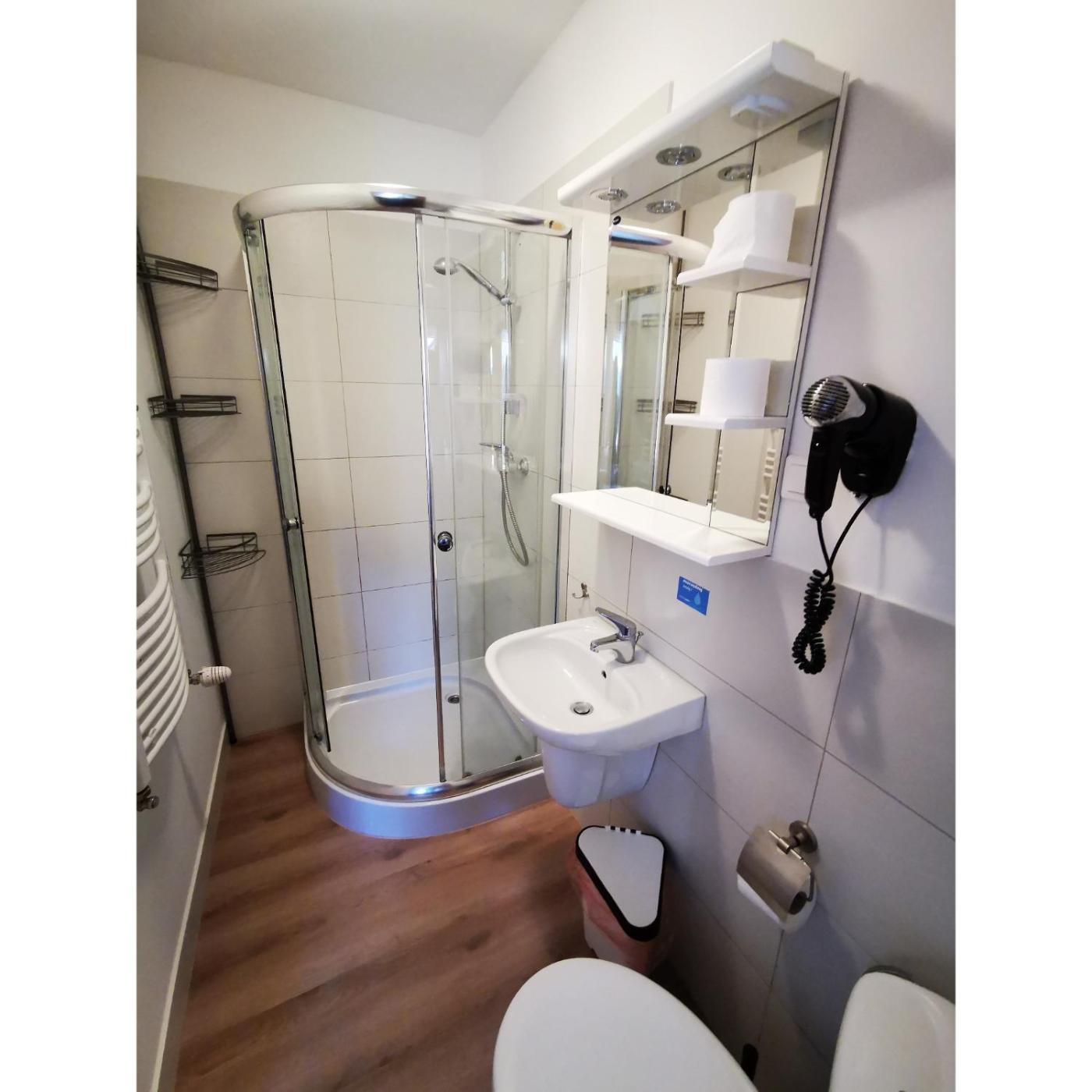 Pokój Czteroosobowy z łazienką. The quadruple rooms kitchen, which features kitchenware, is available for cooking and storing food. The quadruple room provides a wardrobe, an electric kettle, as well as a private bathroom featuring a shower and a hairdryer. Pokój Czteroosobowy - 4 osobowy. Powierzchnia pokoju ok.: 20 mkw.