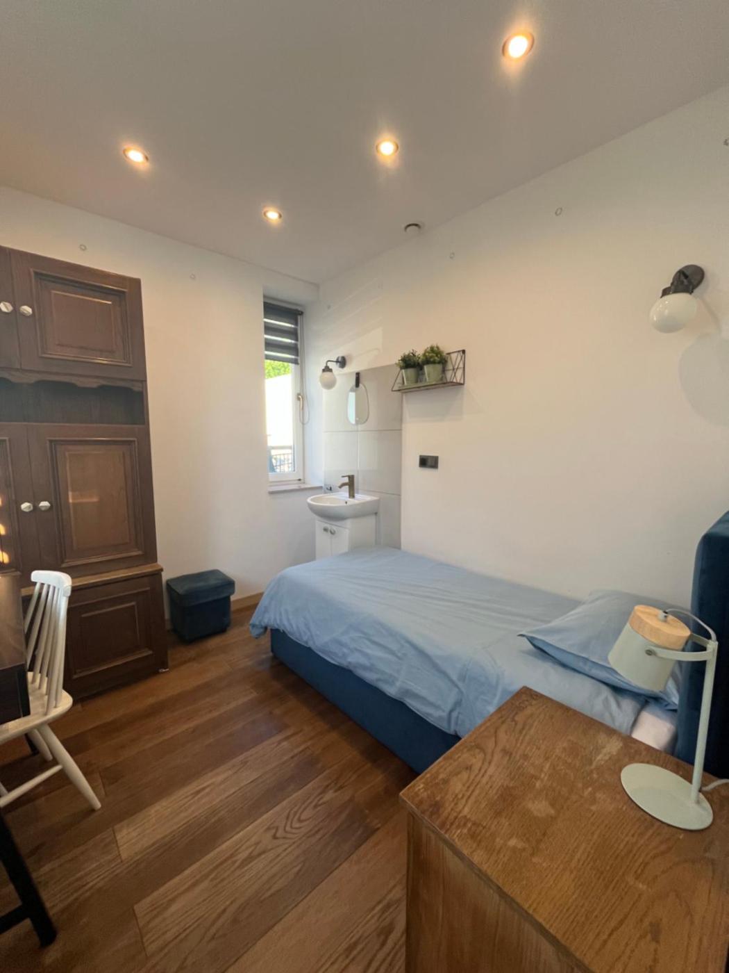 W apartamencie zapewniono kilka sypialni (2), kuchnię oraz łazienkę (1).