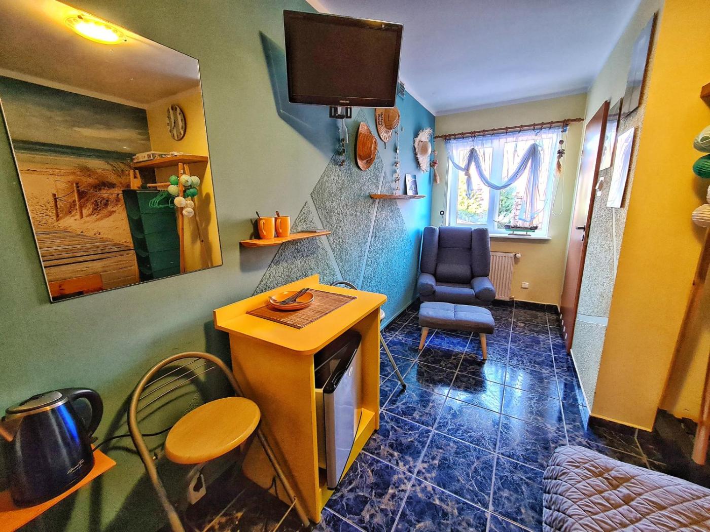 Pokój dwuosobowy z prywatną łazienką. The double room offers a washing machine, a tea and coffee maker, as well as a private bathroom featuring a shower and a hairdryer. This double room features a wardrobe, a high chair for children, a flat-screen TV and an outdoor dining area. The unit offers 1 bed. Pokój Dwuosobowy - 2 osobowy. Powierzchnia pokoju ok.: 8 mkw. ;