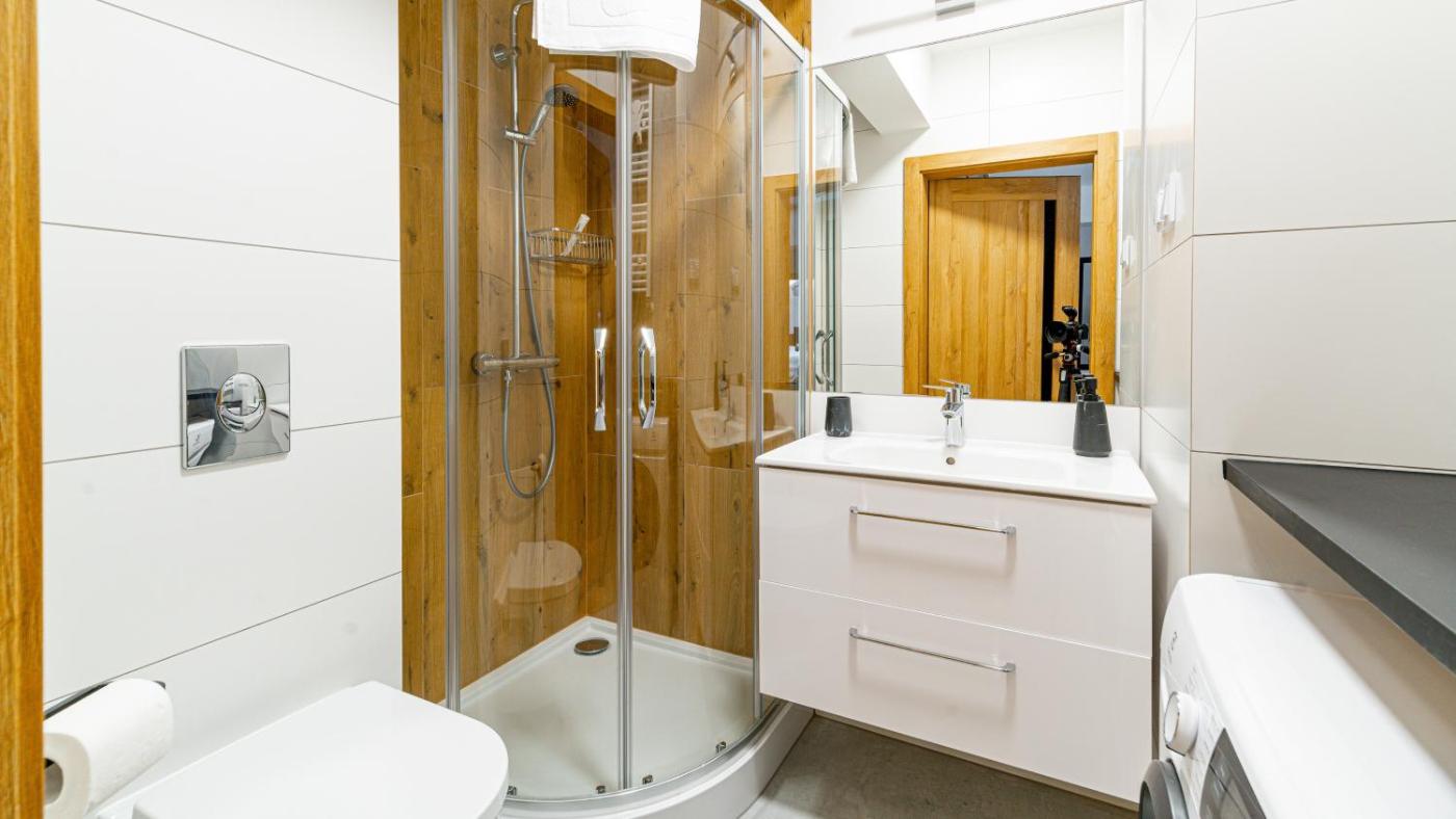 Apartament z 3 sypialniami. This spacious apartment is comprised of 1 living room, 3 separate bedrooms and 2 bathrooms with a shower and a hairdryer. Guests can make meals in the kitchenette that is fitted with a stovetop, a refrigerator, a dishwasher and kitchenware. Featuring a balcony, this apartment also offers a washing machine, a coffee machine and a flat-screen TV with cable channels. The unit offers 4 beds. Apartament - 7 osobowy. Powierzchnia pokoju ok.: 80 mkw. ;