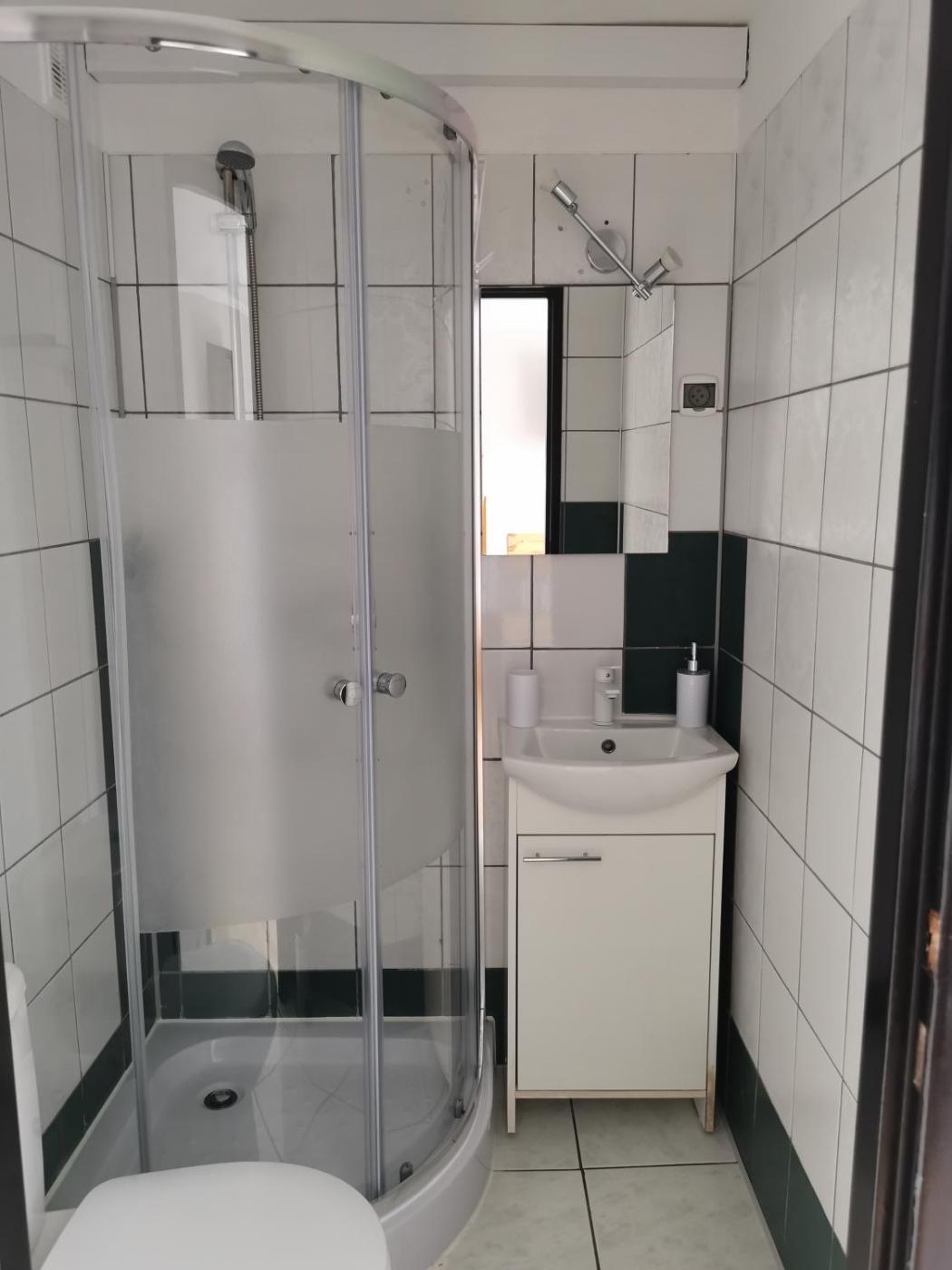 Pokój trzyosobowy z łazienką. The triple room provides a wardrobe, as well as a private bathroom featuring a shower. The unit offers 2 beds. Pokój Trzyosobowy - 3 osobowy. Powierzchnia pokoju ok.: 12 mkw.