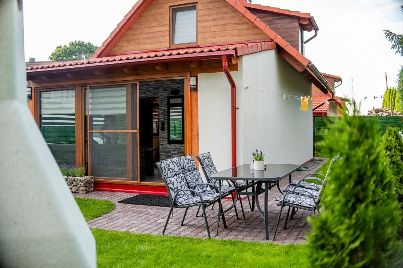Domek z 2 sypialniami. Guests will have a special experience as this chalet provides a sauna and a fireplace. Featuring a private entrance, this chalet is comprised of 1 living room, 2 separate bedrooms and 1 bathroom with a walk-in shower and a hairdryer. Guests will find a stovetop, a refrigerator, kitchenware and an oven in the well-equipped kitchen. The chalet also has a barbecue. Boasting a terrace with garden views, this chalet also offers a tea and coffee maker and a flat-screen TV with satellite channels. The unit offers 5 beds. Domek - 7 osobowy. Powierzchnia pokoju ok.: 70 mkw. ;