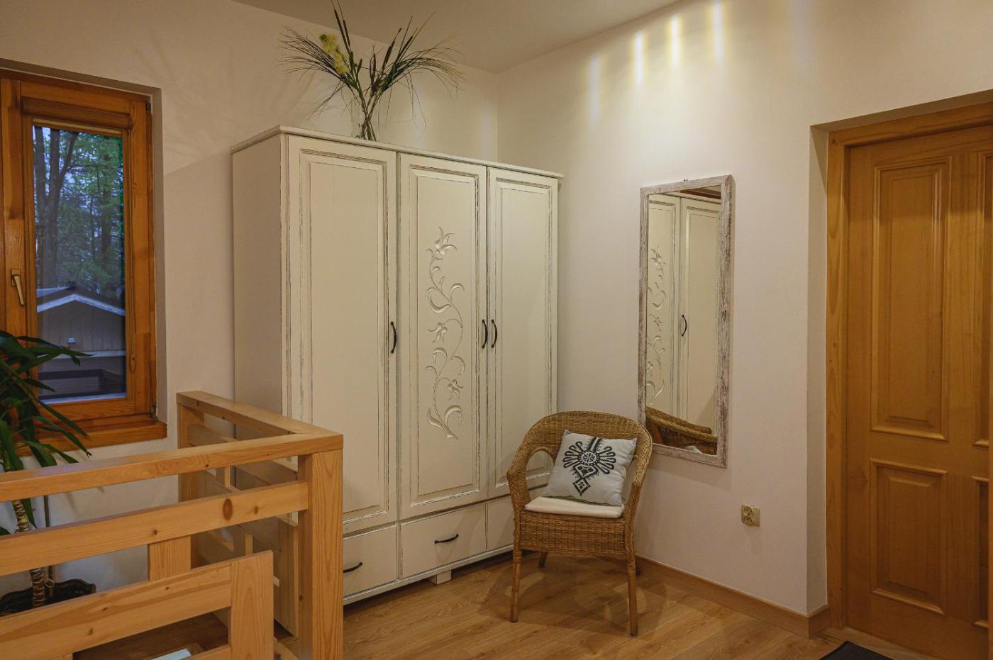 Domek typu Superior. This chalet comes with 1 living room, 2 separate bedrooms and 1 bathroom with a shower and a hairdryer. Meals can be prepared in the kitchen, which features a stovetop, a refrigerator, kitchenware and an oven. Boasting a terrace with garden views, this chalet also features a tea and coffee maker and a flat-screen TV. The unit has 5 beds. Domek - 6 osobowy. Powierzchnia pokoju ok.: 70 mkw.